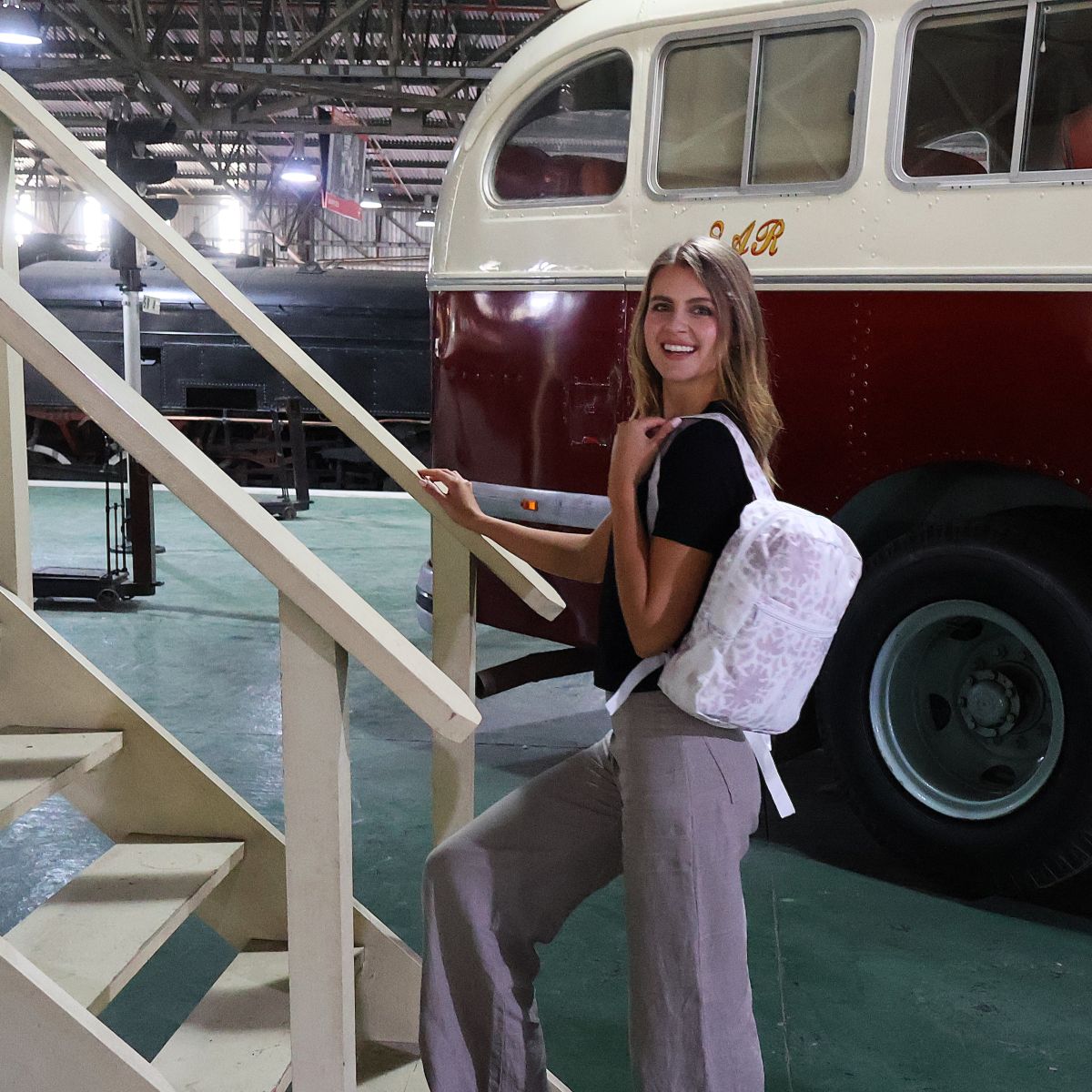Letheba Small Backpack – Giraffe Pattern in Pale Mauve Brown